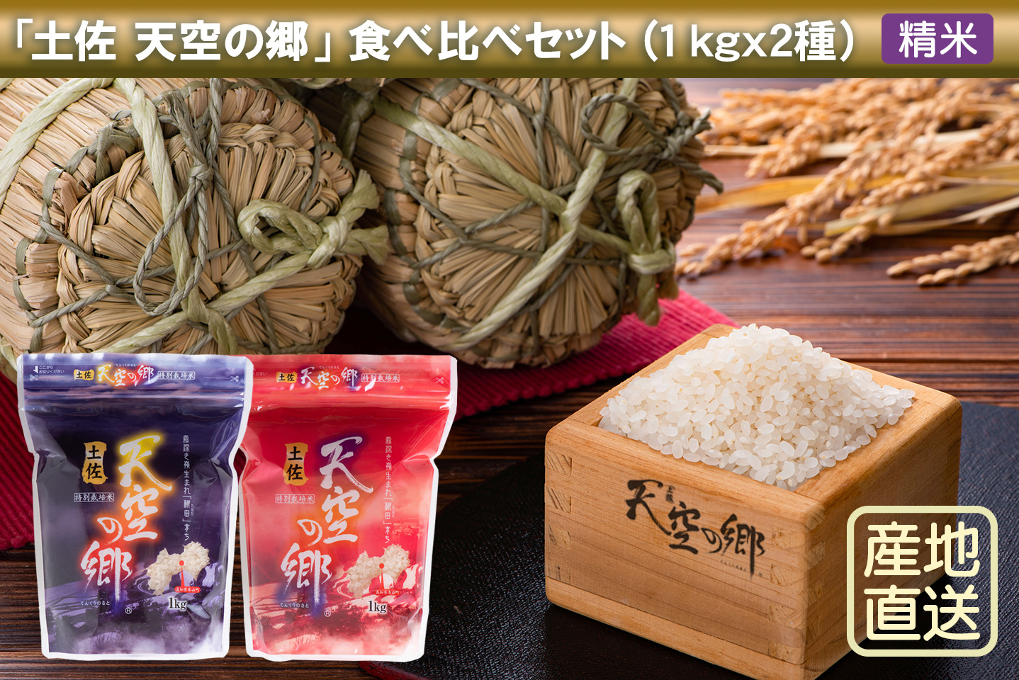 「土佐天空の郷 にこまる」精米1kgと「土佐天空の郷 ヒノヒカリ」精米1kgのセットです。