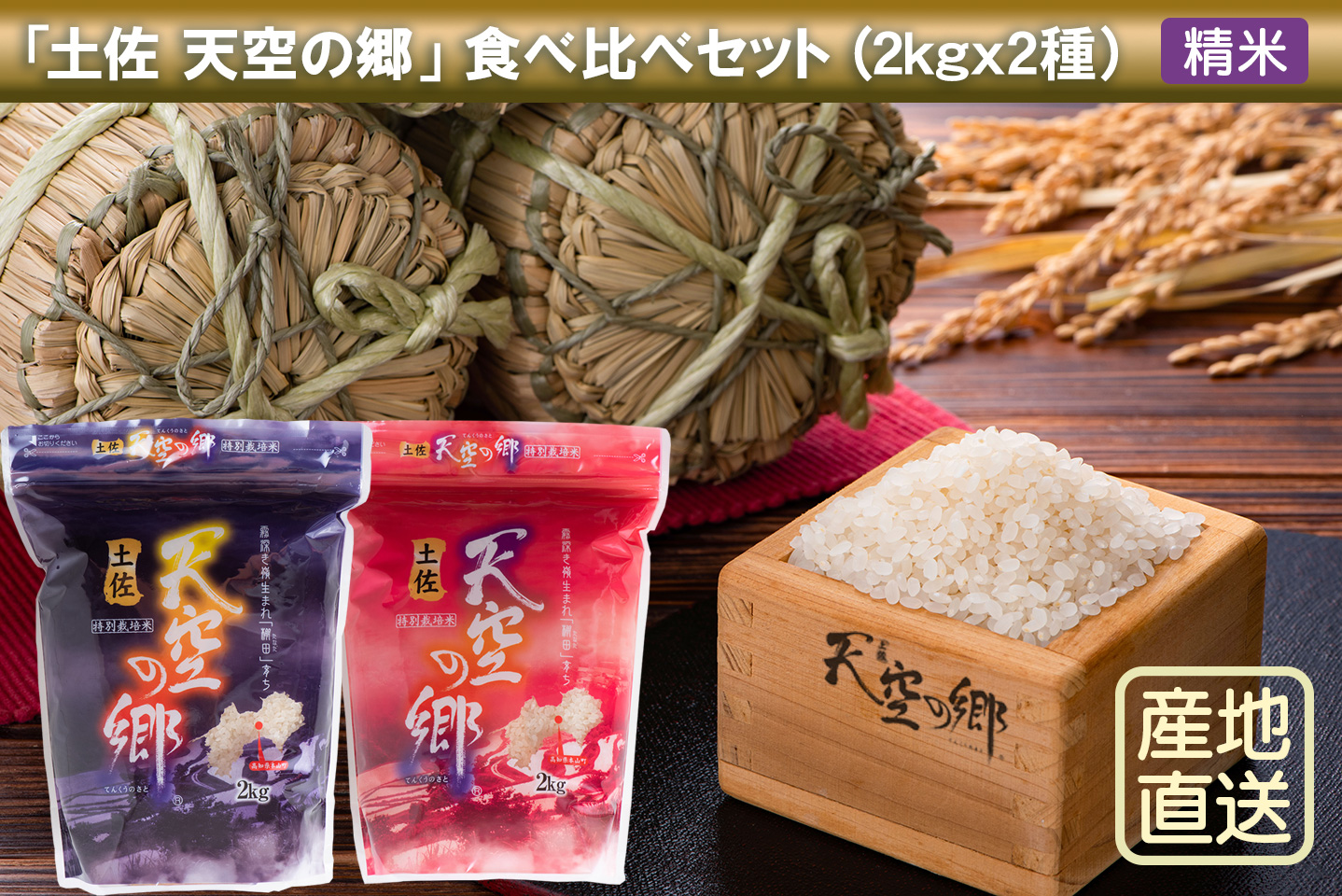 「土佐天空の郷 にこまる」精米2kgと「土佐天空の郷 ヒノヒカリ」精米2kgのセットです。