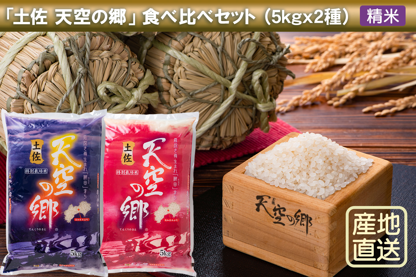 「土佐天空の郷 にこまる」精米5kgと「土佐天空の郷 ヒノヒカリ」精米5kgのセットです。
