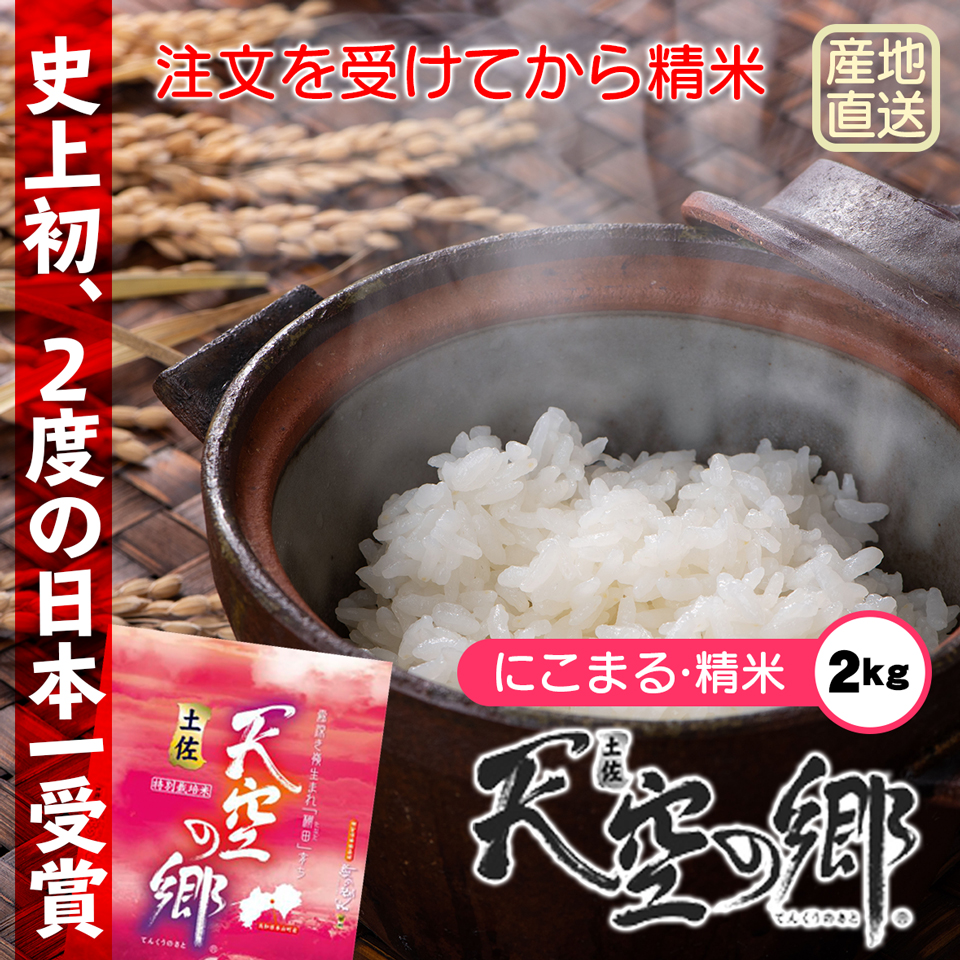 「土佐天空の郷 にこまる」精米1kgと「土佐天空の郷 ヒノヒカリ」精米1kgのセットです。